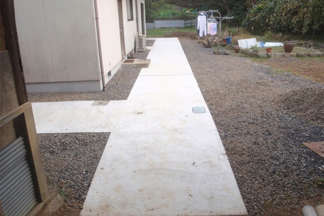 脚を悪くして車椅子生活になったとき、家の周りを舗装して快適性を作ります。